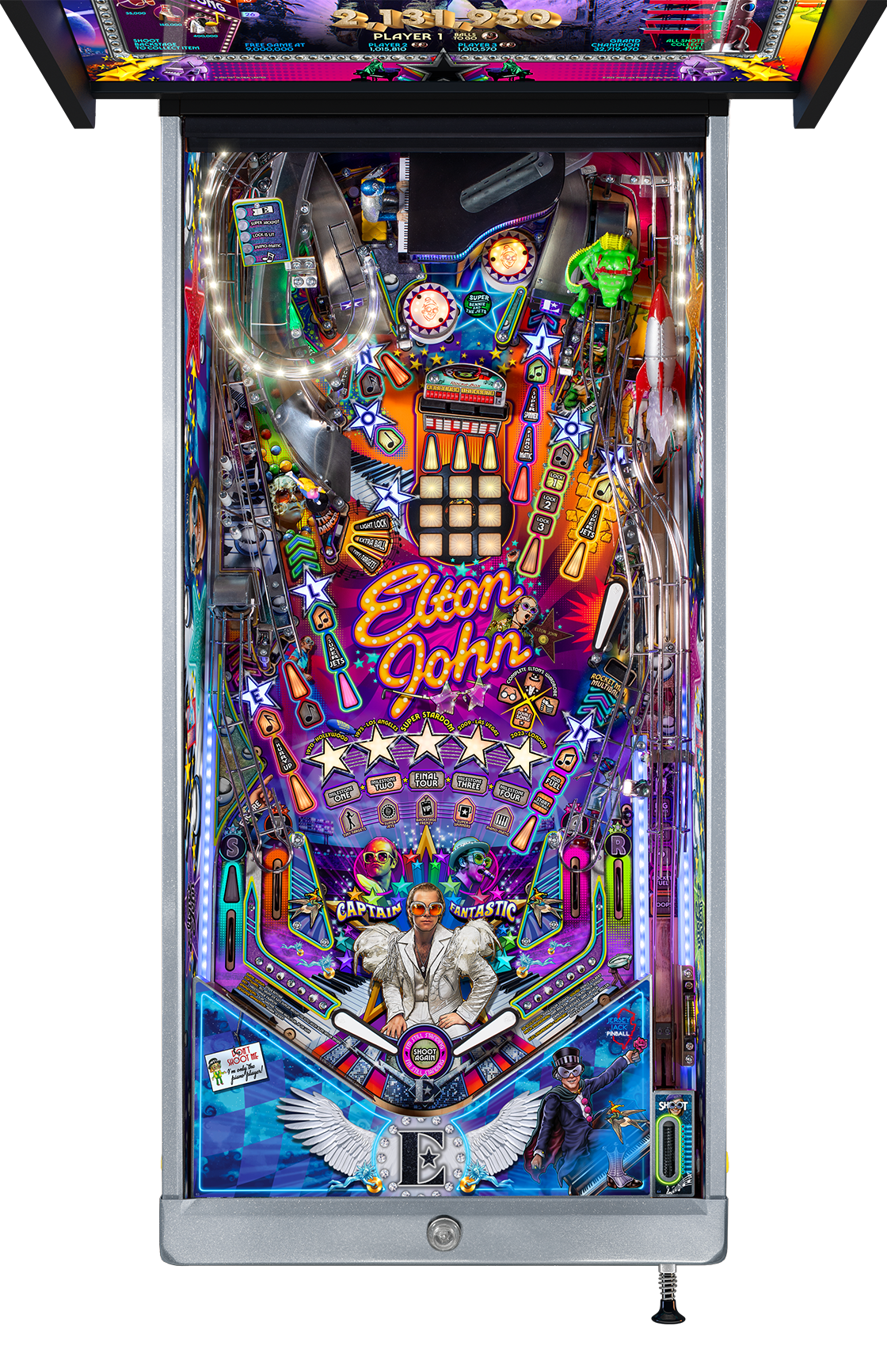 - Unique Artwork: The cabinet and backglass feature exclusive, high-resolution artwork depicting Elton John in his signature flamboyant outfits, alongside concert scenes and album covers.