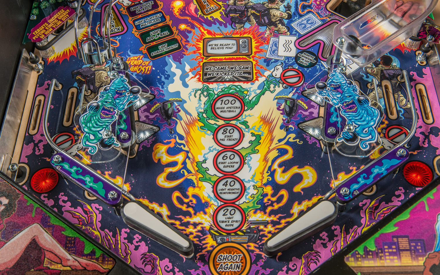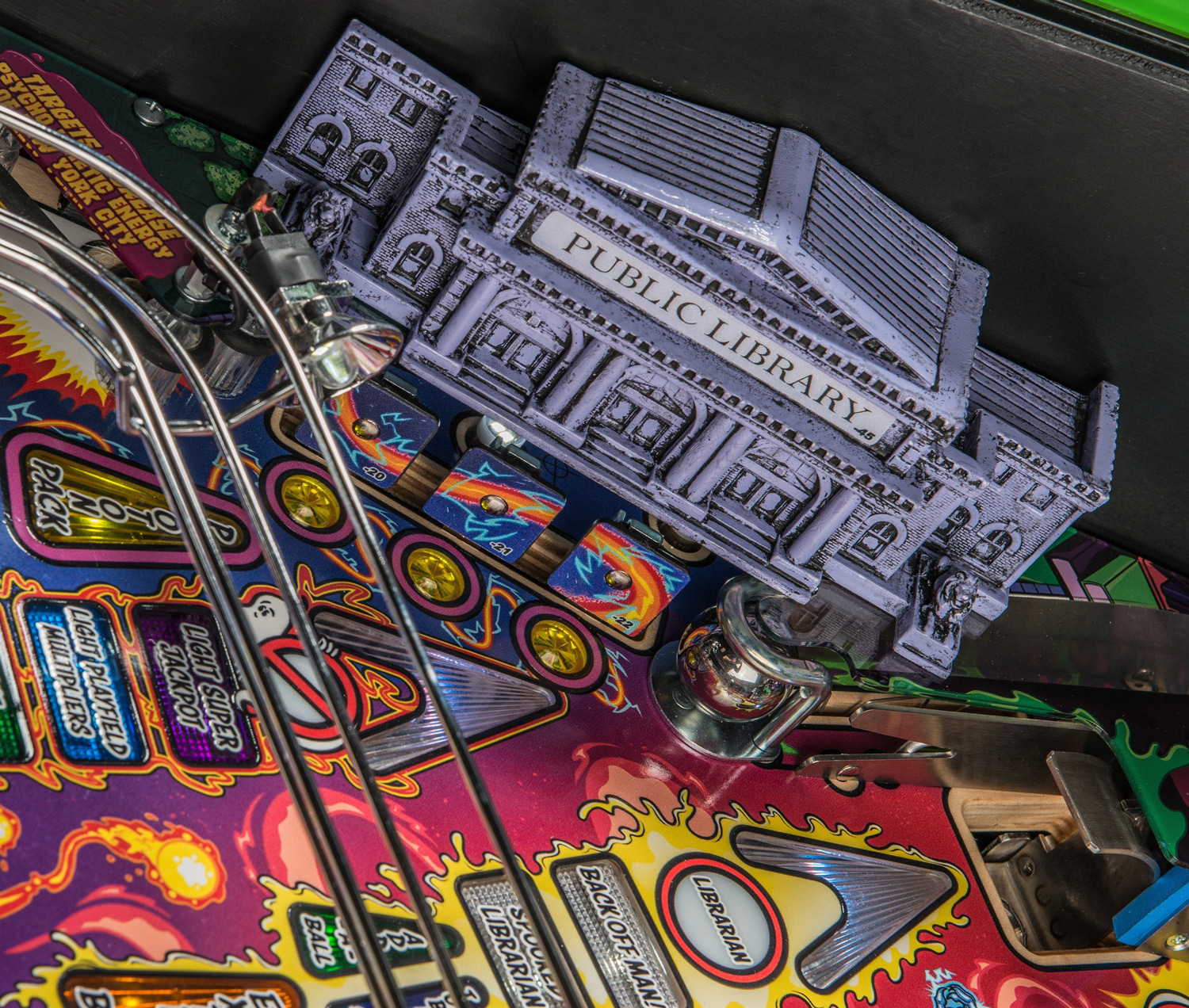 - A moving Slimer target that slides across the playfield.