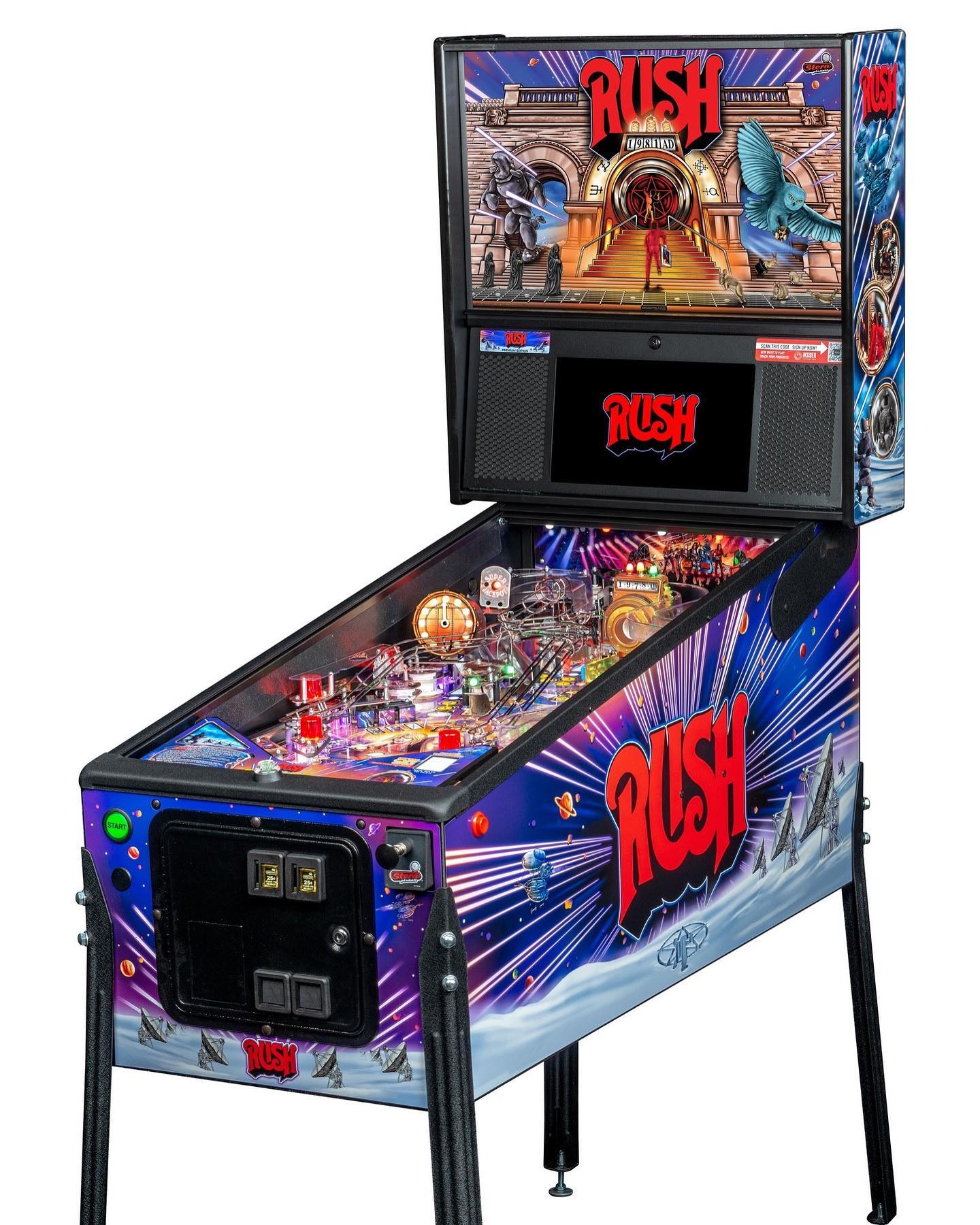 Order Now: Join the ultimate rock and roll adventure and experience the thrilling pinball action with the Rush Premium Pinball Machine by Stern Pinball. Order now to secure your piece of pinball perfection and bring the legendary music of Rush to your home or arcade!