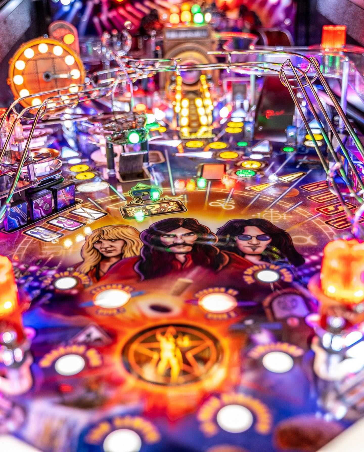 The Rush Premium Pinball Machine features captivating artwork that honors the band’s illustrious career. The cabinet is adorned with vibrant, detailed illustrations of Rush’s album covers, band members, and iconic imagery, rendered in bold, dynamic colors. The playfield is a visual masterpiece, meticulously designed with thematic elements and intricate details that transport players into the heart of a Rush concert.