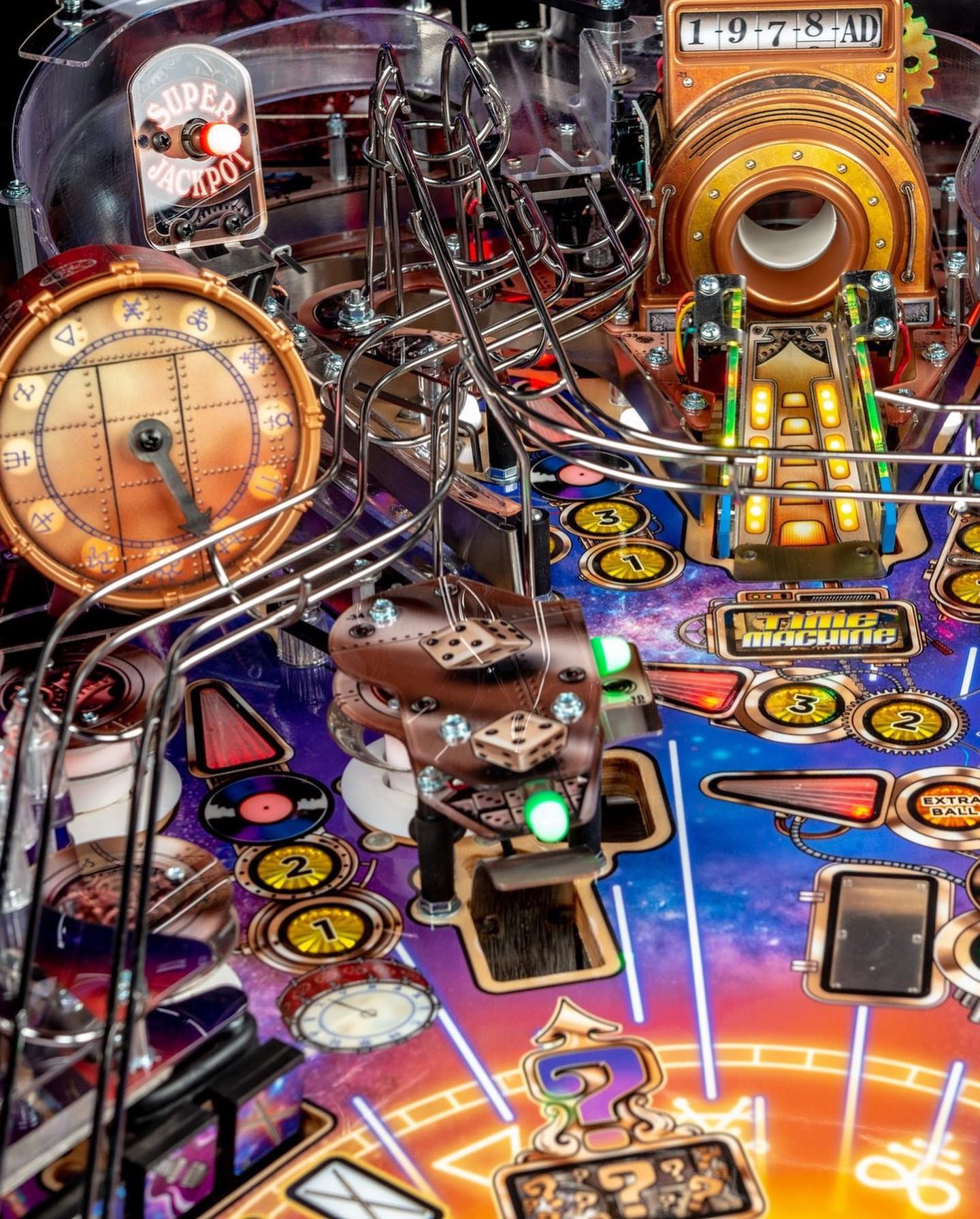 Travel back in time with Rush by shooting pinballs through a custom sculpted, electromagnetic Time Machine. Players will explore Red Barchetta, Subdivisions, and Fly By Night Multiball action. The Rush Premium model pinball experience includes a motorized ramp with custom lighting effects and a custom sculpted Clockwork Angels Clock, inspired from Neil Peart’s bass drum from their Time Machine Tour. This motorized clock illuminates, and when it strikes midnight players will be transported to a Headlong Fight Multiball frenzy.