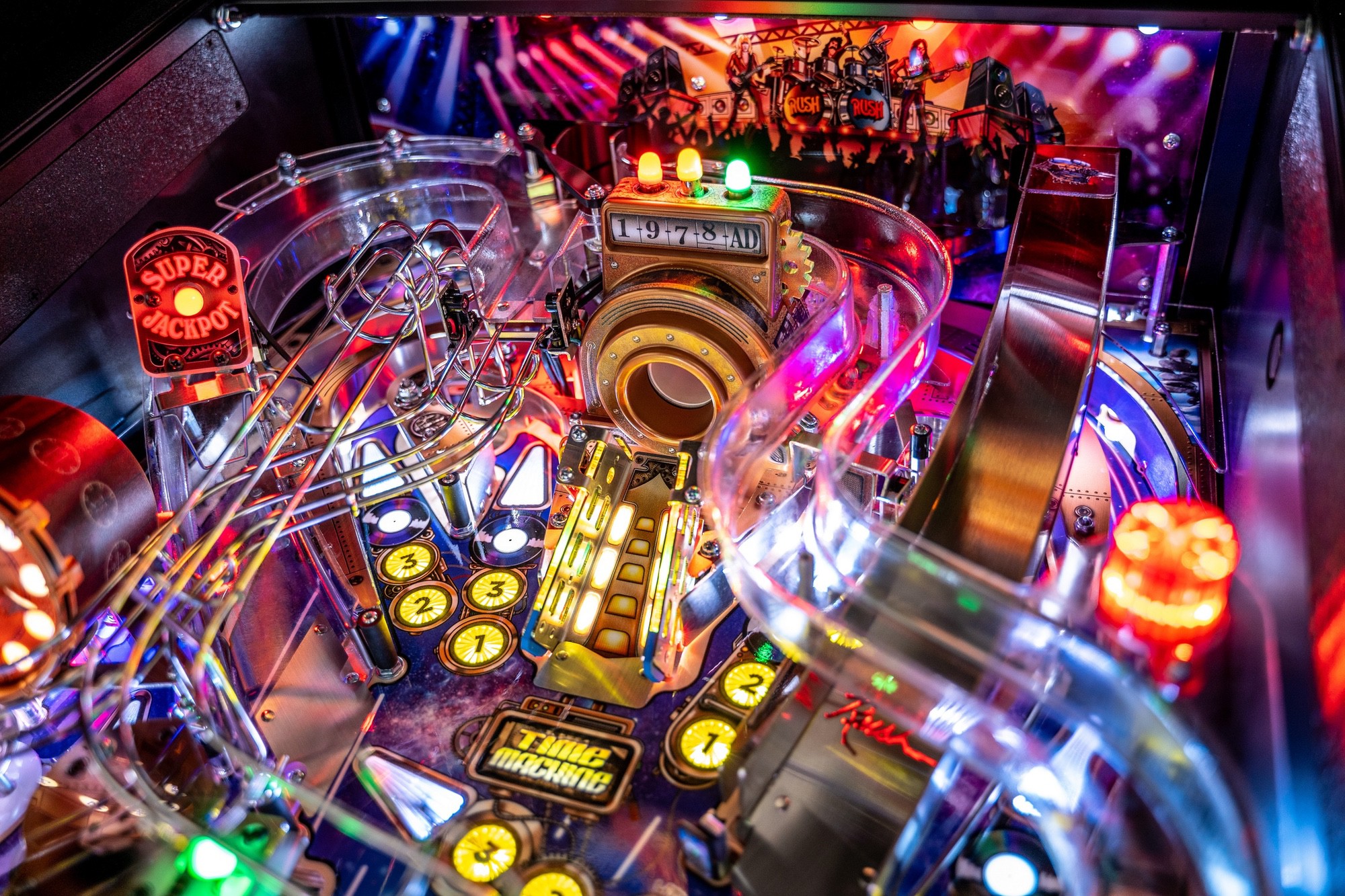 • Interactive Toys and Mechanisms: The Rush Premium Pinball includes exclusive interactive toys and mechanisms that elevate the gameplay experience. Key features include a custom drum set that spins and rocks, a moving guitar mechanism, and interactive ramps that add depth and excitement to the game.
