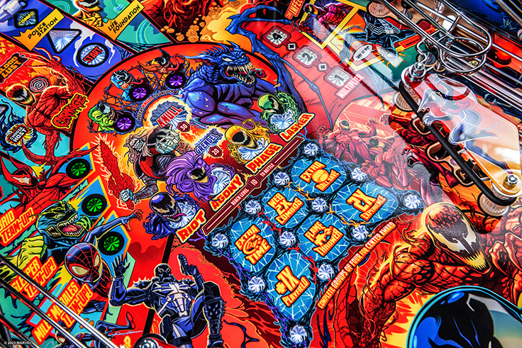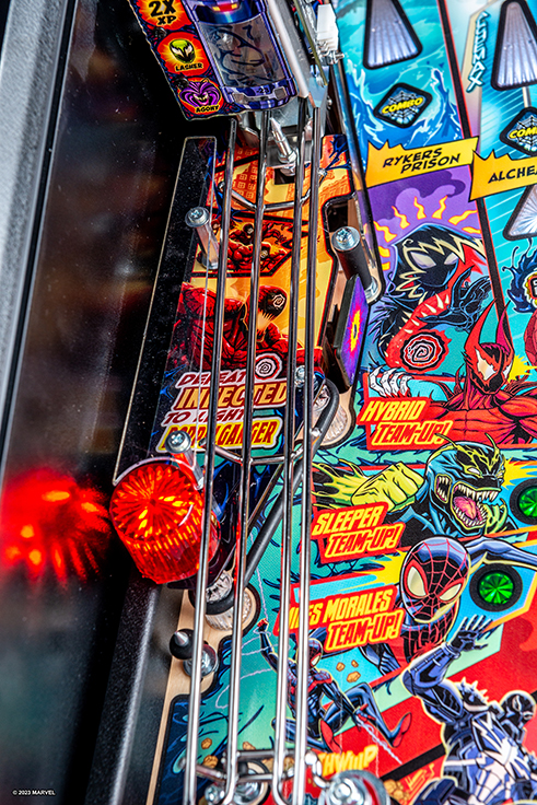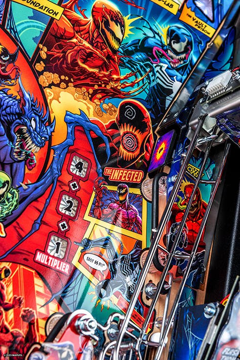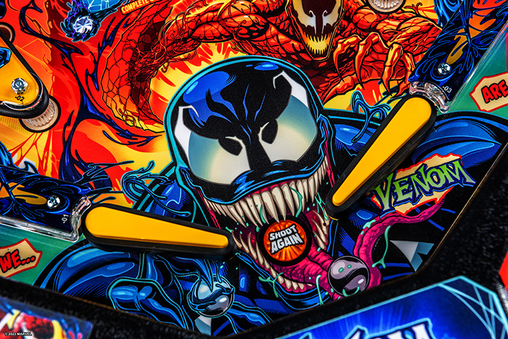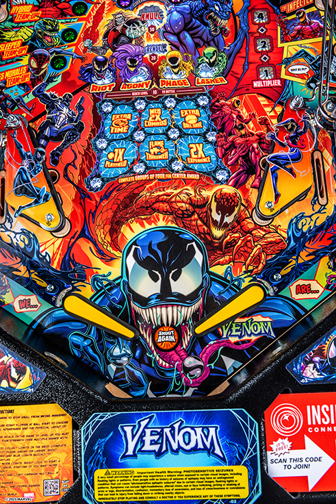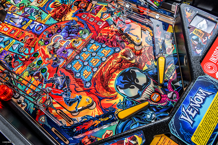 Stern’s Venom pinball games will immerse players into the mayhem of this antihero’s Marvel Universe, featuring more than 20 characters including: Eddie Brock, Flash Thompson, Gwen Stacy, Peter Parker, Black Suit Spider-Man, Miles Morales, Riot, Agony, Lasher, Phage, Doppelganger, Venomized Hulk, Venomized Wolverine and Venomized Captain America. Venom’s arch enemy Carnage is collecting Codices to awaken Knull, the God of the symbiotes. Venom must stop Carnage by battling through his army of symbiotes and the Infected to prevent him from taking over the world.