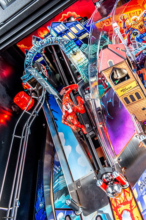 - Dynamic Lighting and Sound Effects: Feel the intensity of Venom’s battles with dynamic LED lighting effects and authentic sound effects that react to the action on the playfield. Enjoy a powerful soundtrack featuring music and sound bites from the Marvel universe, enhancing the immersive experience.